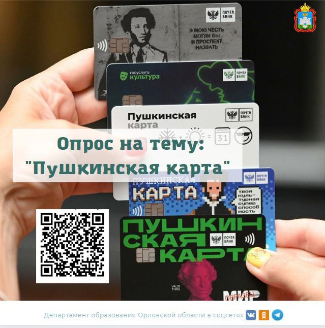 Предлагаем пройти опрос по теме "Пушкинская карта" по ссылке: https://pos.gosuslugi.ru/lkp/polls/339906/.